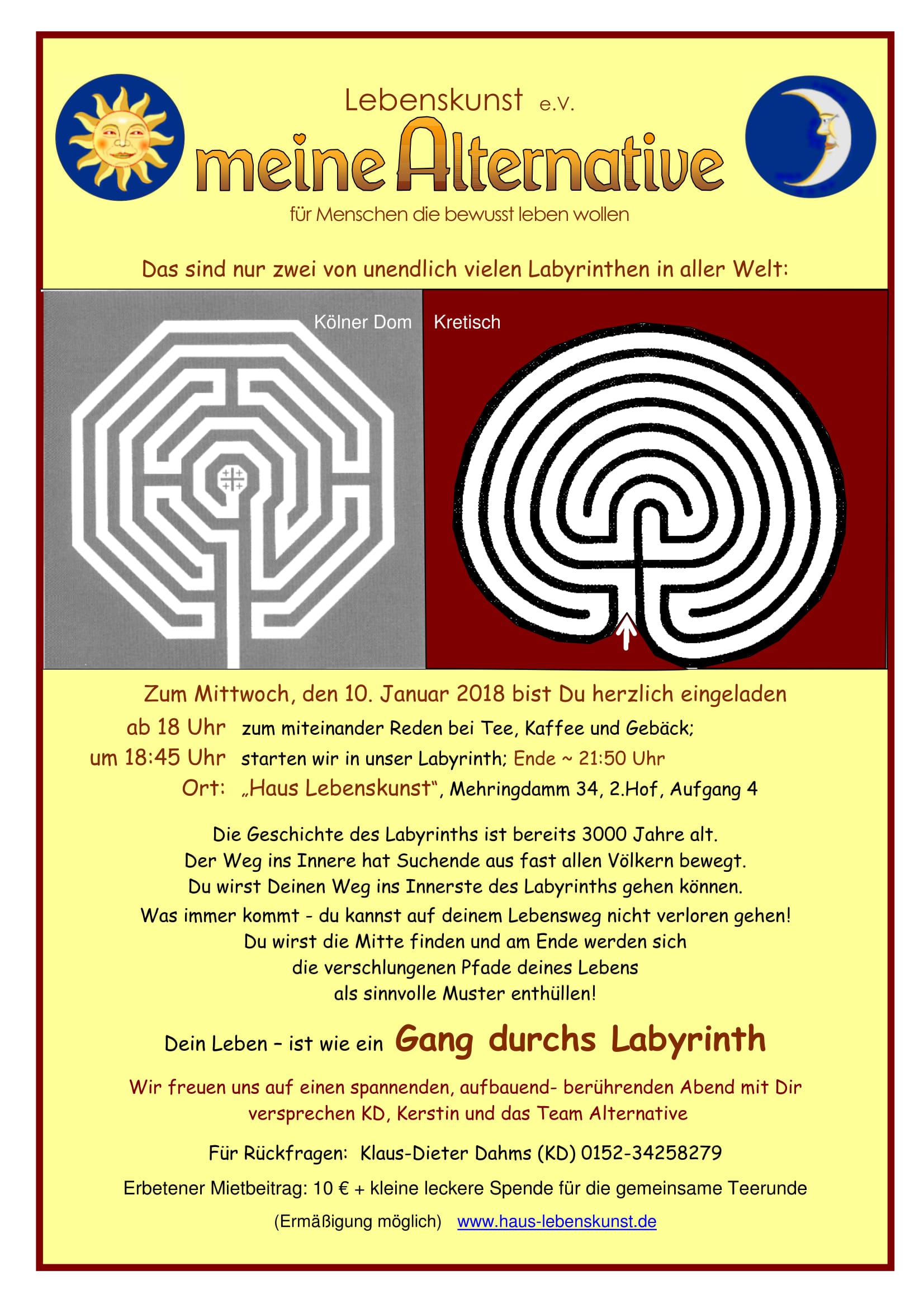 Du bist herzlich eingeladen ab 18 Uhr zum miteinander Reden bei Tee, Gebäck und Labyrinth-Bildern;