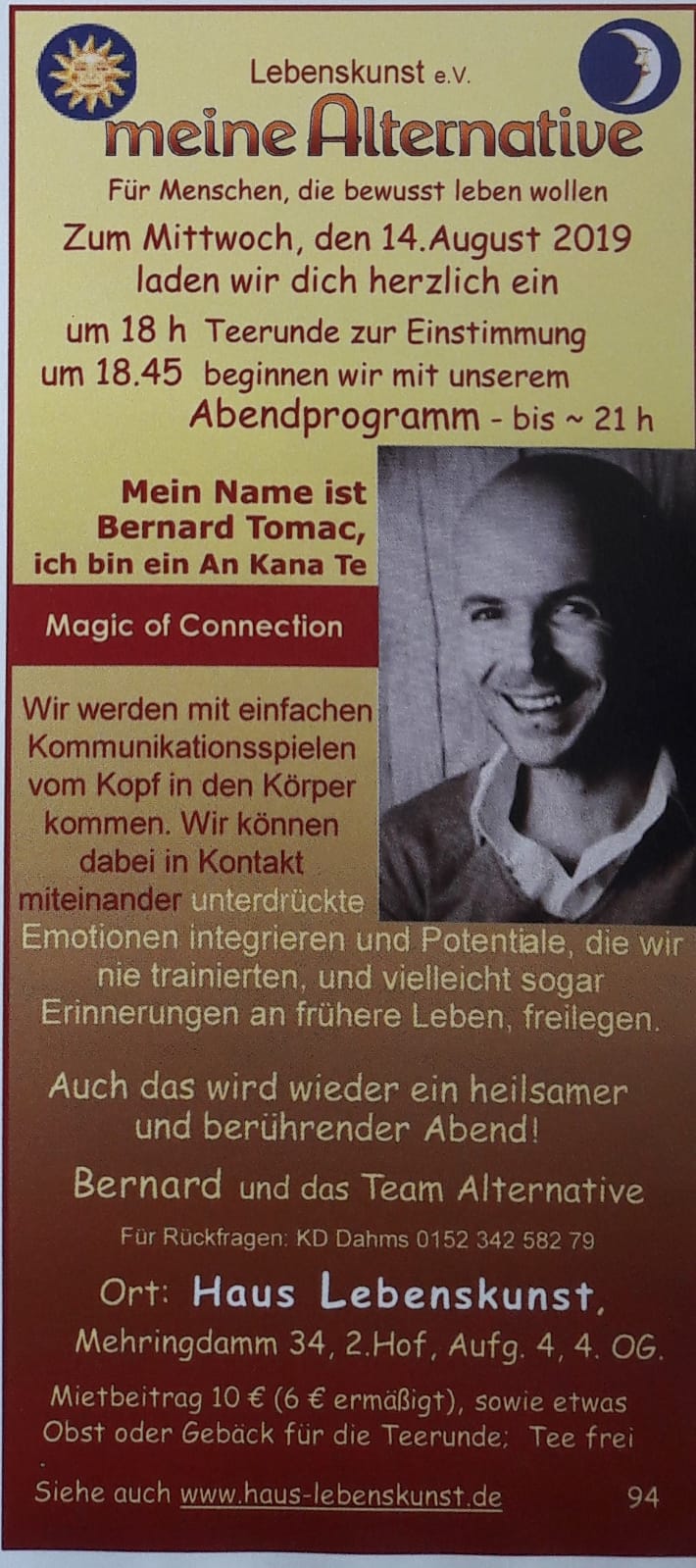 Wir freuen uns auf einen spannenden, aufbauend- berührenden Abend mit Dir