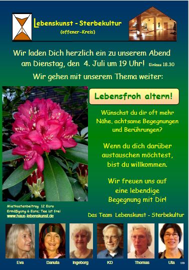 Der Offene Arbeitskreis Lebenskunst - Sterbekultur lädt einmal im Monat dienstags im Haus Lebenskunst ein zu einem Gedankenaustausch.